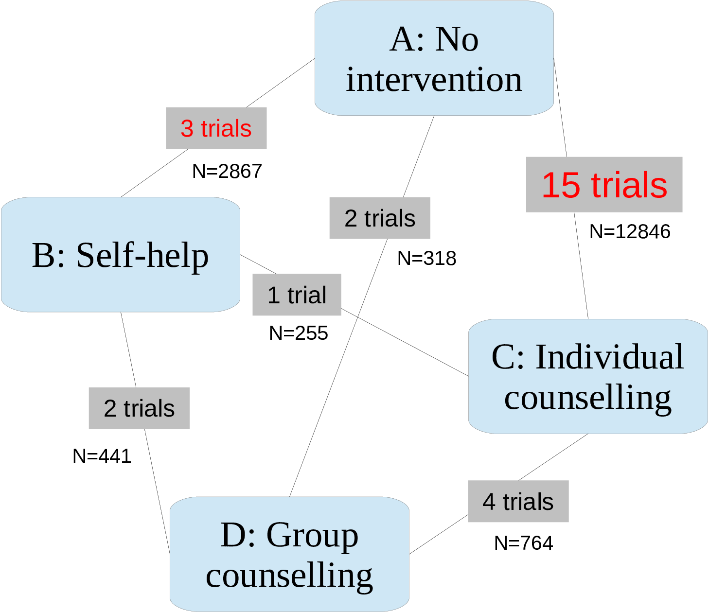 "No intervention", "Self-help", "Individual counselling", "Group counselling")