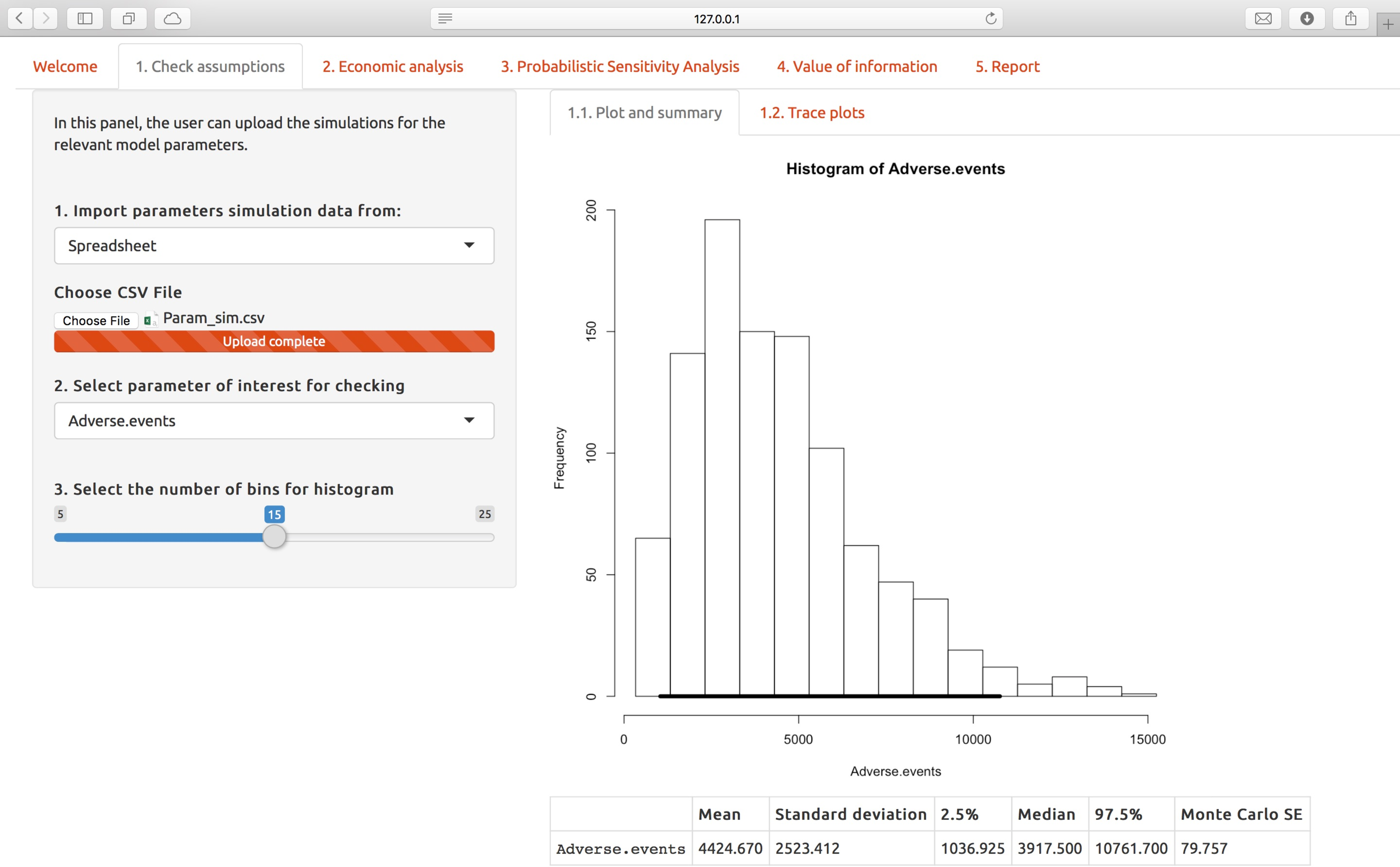 • Check assumptions: this page allows the users to check the distributional assumptions underpinning the probabilistic sensitivity analysis;