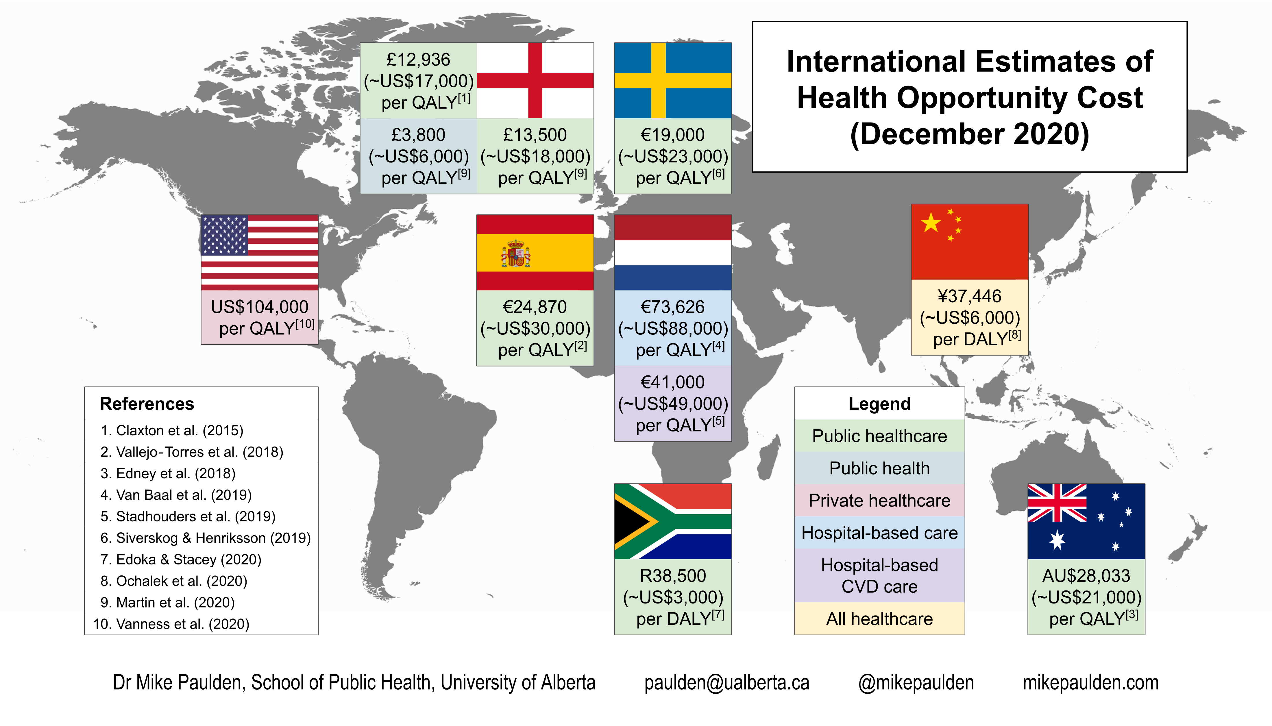 Select as the most “cost-effective” the intervention that is associated with the maximum expected utility \(\class{myblue}{\mathcal{U}^t = \E_\boldsymbol\omega [u(e, c; t)]}\)