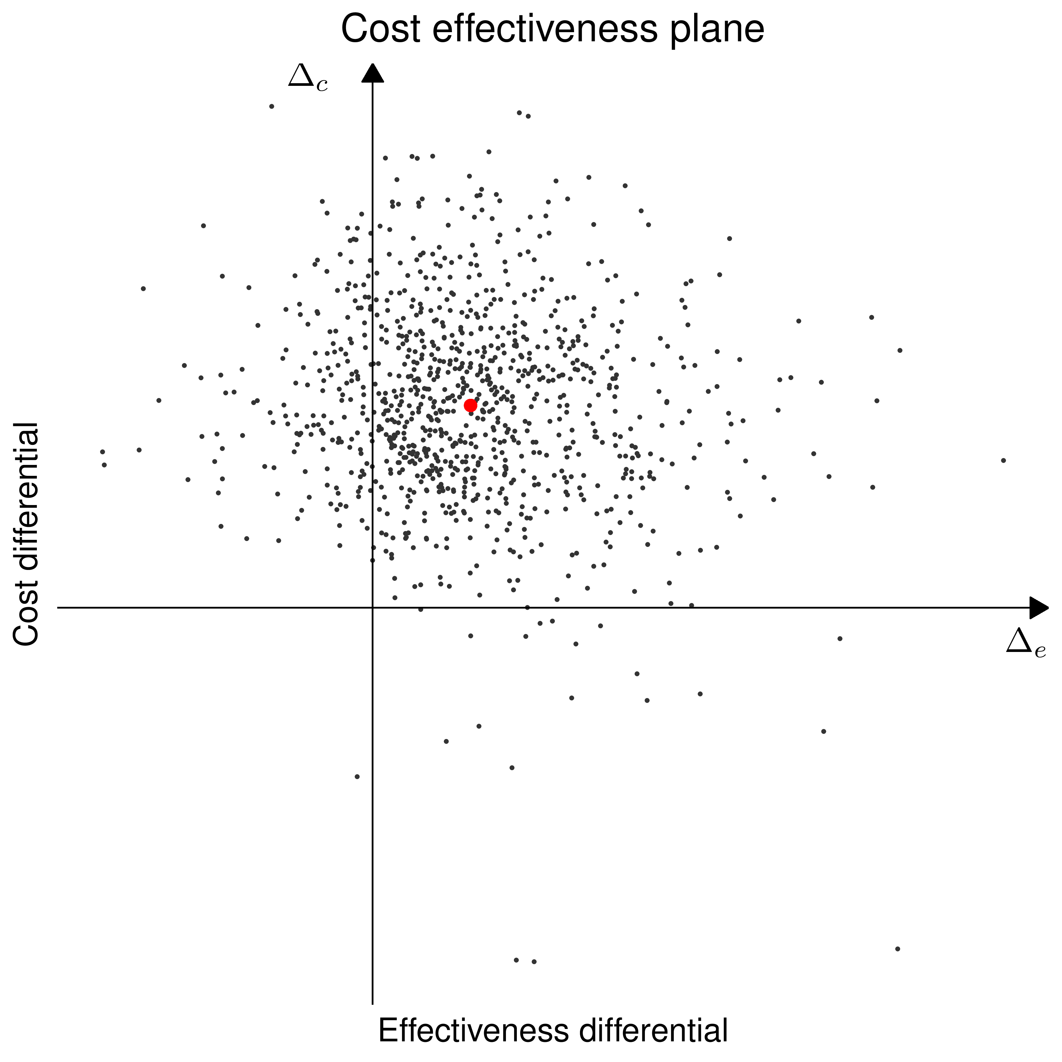 Can summarise uncertainty in the decision-making process using the cost-effectiveness acceptability curve