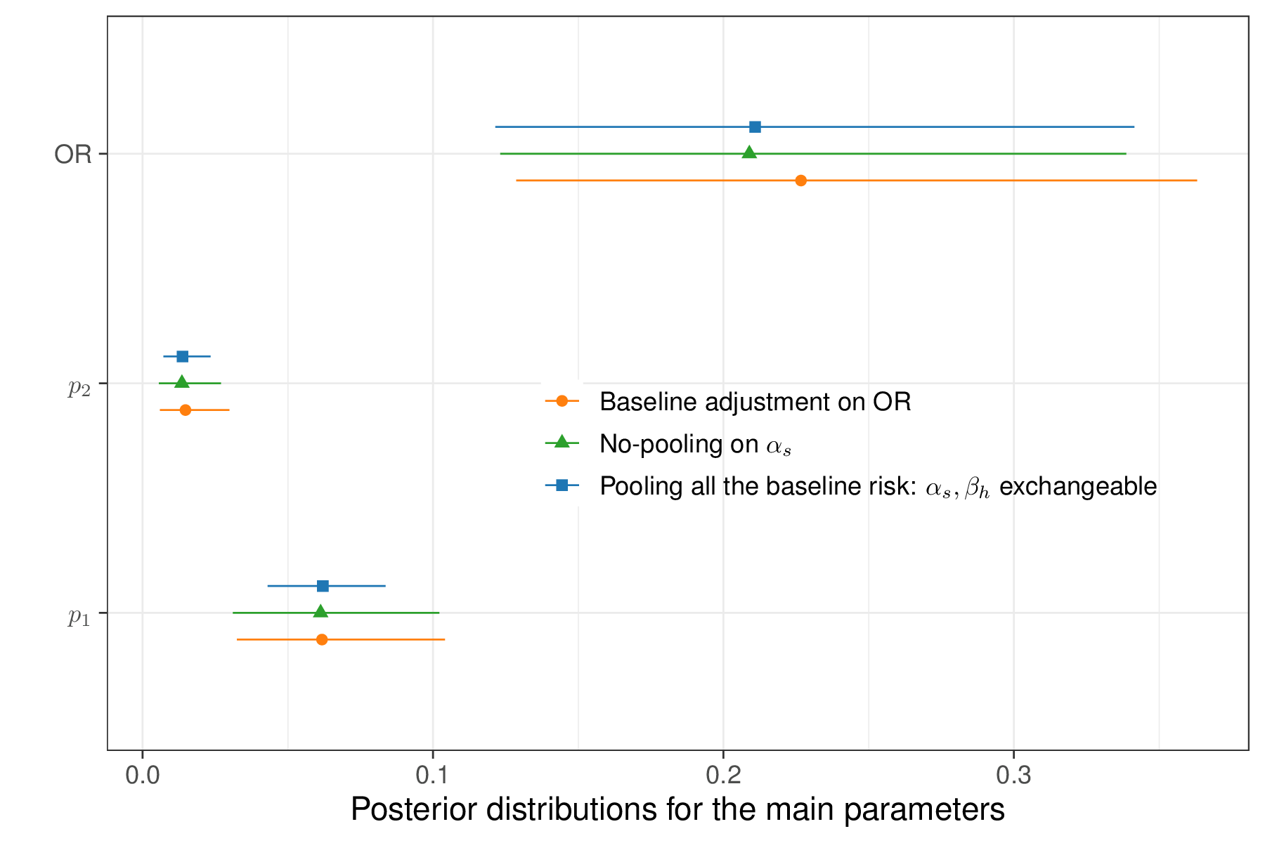 - from a Bayesian perspective, this does not pose a substantial problem, because once we obtain simulations from the posterior distribution for \(\alpha_0\) and \(\beta_0\), it is possible to simply rescale them to obtain samples from the posterior distribution of \(\mu_e\) and \(\mu_c\)